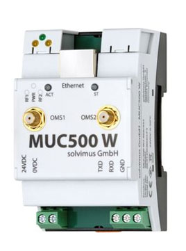 The powerful data logger for huge installations with 4 GB storage. Metering interfaces are up to two independent wM-Bus (OMS) channels and one RS-232 interface for connecting an external M-Bus level converter. Regarding this communication the MUC500 M offers up to 500 unit loads on the bus lines.